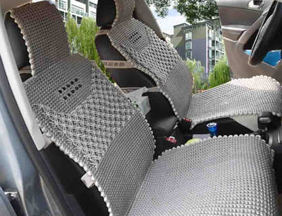 玉石凉垫是由玉石方片和丝线编织而成,具有醒目提神和保健等功能。但在选购玉石类坐垫时要留意,有许多无良商家用劣质人造玉石制作凉垫,并且玉石类凉垫冷的时候冰冷,热的时候也会吸热,如果爱车长时间在阳光下停放,坐垫就会变得十分烫手;而长时间开空调之后,这种坐垫儿就会非常冰冷。