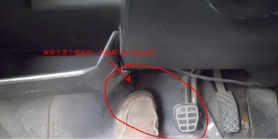 然后左脚慢慢抬离合,抬到车身发抖(半离合状态),就稳住左脚不动
