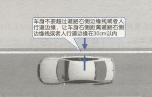 6.当听到“靠边停车”的口令后,你距离成功很近了,不要慌,第一反应是打右转向灯,然后脑袋做个明显的偏转动作去看右边的后视镜,如果右边后方没有车辆,请请向右打方向,同时踩刹车,左脚离合也跟着踩下去,用平时你定点停车的感觉使车距离右边路沿30CM的时候,回正方向,将车停稳在路边。