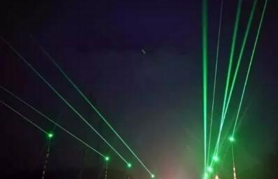 当傍晚来临,激光发射器会自动打开,发射出频闪及常亮的绿色激光光束,形成一道道激光带,提醒驾驶员安全驾驶。