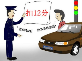 上道路行驶的机动车未悬挂机动车号牌的,或者故意遮挡、污损、不按规定安装机动车号牌的记12分,罚款200元。A、B类驾驶证会因此降一级,C1及所有类型的驾驶证都会被暂扣驾驶证,参加为期七天的学习和考试,通过考试的才能拿回驾驶证。