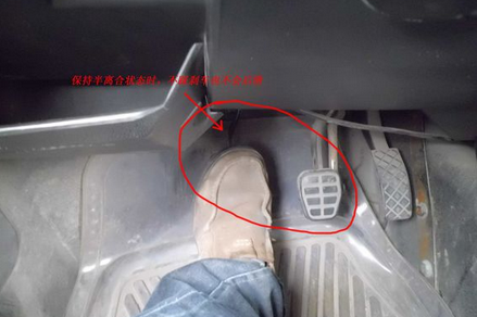 然后左脚慢慢抬离合,抬到车身发抖(半离合状态),就稳住左脚不动
