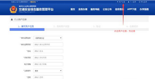 一、注册—进入南京交通安全综合服务管理平台