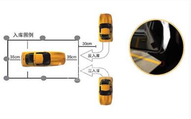 左出库:车头盖住前方白线时,方向盘向左打死 车正时,向右回正方向 停车时前车轮一定要超过左边白线