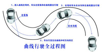 曲线行驶操作要领:熟练操纵转向装置,控制车辆曲线行驶