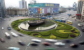 假如车辆要直行,则应该选择环岛内中间车道。由于车辆进入环岛后不需要变换车道,因此车辆进入环岛时不需要打左转向灯;当车辆准备出环岛继续直行时,由于要跨越环岛内右侧车道,因此需要打右转向灯提示其他车辆注意,然后驶出环岛。