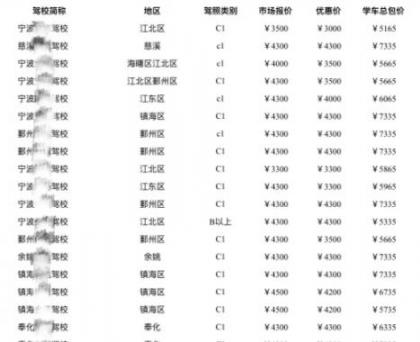宁波驾校学车价格一览表