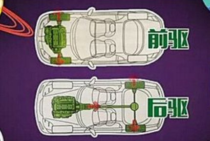 很多车都不是有四个轮子都负责驱动的,前驱车就是只有两个前轮子的,负责驱动汽车的前进,这时车子就像被前面有个人拉着走,而后驱车就是后面两个轮子负责整个车的行进,车子在后面被推着走。这是最显而易见的一个区别。